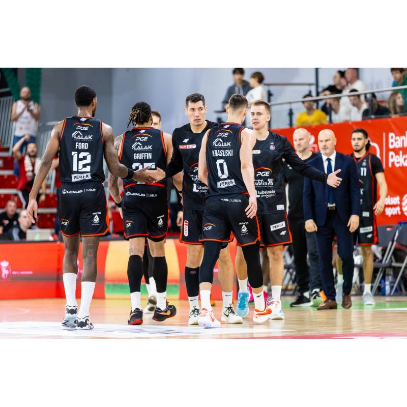 Oficjalna koszulka PGE Startu Lublin na mecze domowe w sezonie 2025/2026. Kolor: czarny (z czerwonymi elementami). Producent: 4F.
